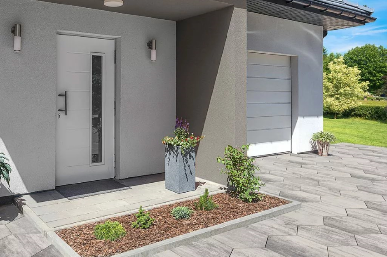 Taka forma potrafi „zrobić” projekt nawet wtedy, gdy reszta elementów jest oszczędna: prosta ścieżka do drzwi, minimalistyczne rabaty, stonowane donice czy spokojna zieleń. W praktyce oznacza to, że nawierzchnia nie jest już tylko tłem, ale ważnym elementem aranżacji, który porządkuje widok i dodaje mu charakteru.