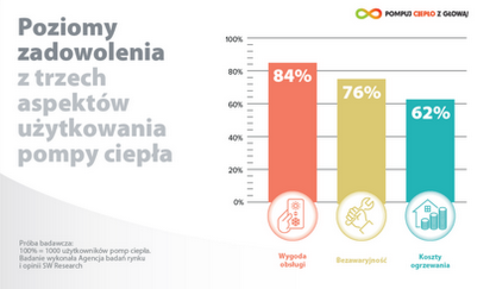 Te cechy przekładają się też na lojalność wobec technologii. Aż 73% badanych zadeklarowało, że ponownie wybrałoby pompę ciepła jako źródło ogrzewania. Taka deklaracja zwykle pojawia się wtedy, gdy oczekiwania dotyczące funkcjonalności, wygody i przewidywalności działania są spełnione w praktyce, a nie tylko na etapie wyboru urządzenia.
