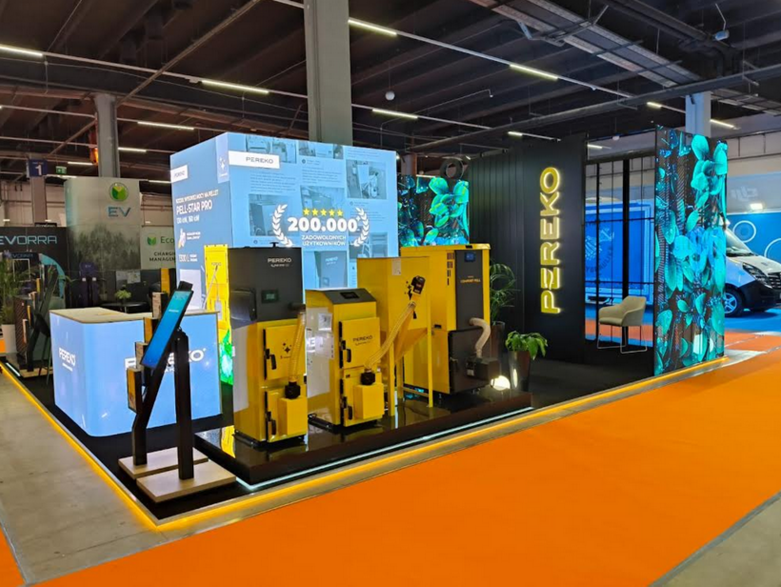 Na miejscu odwiedzający mogli zapoznać się z ofertą marki tj. kotłami na pellet, zgazowującymi drewno oraz pompą ciepła. Szczególną uwagę zwracały kompaktowe kotły pelletowe z automatycznym podajnikiem.