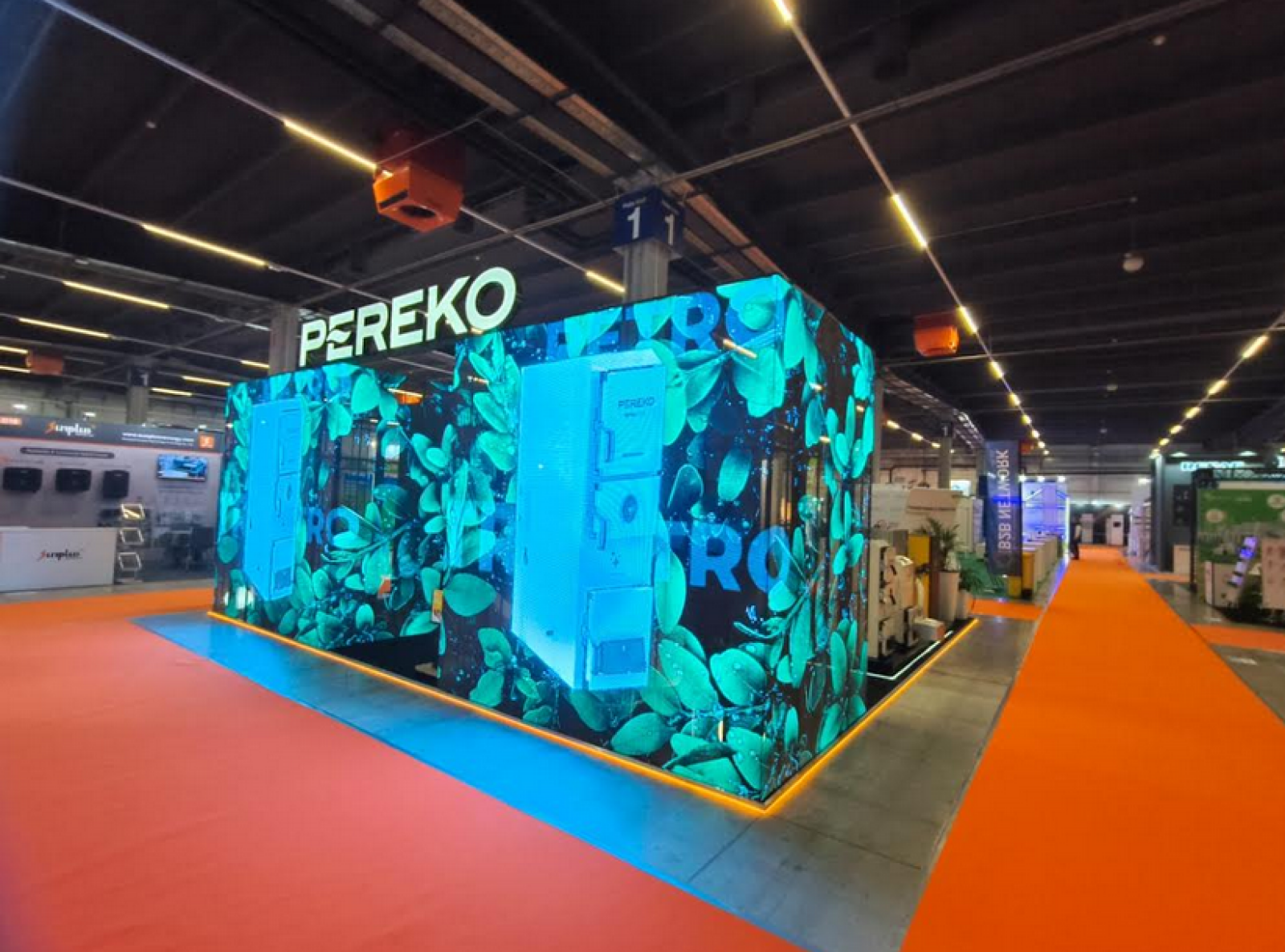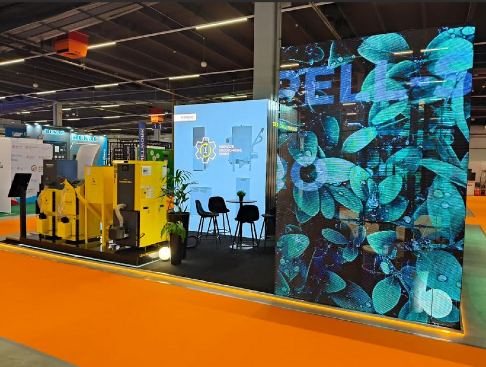 Jednym z najbardziej charakterystycznych elementów stoiska były transparentne ekrany LED, wykorzystujące przezroczyste diody do prezentacji urządzeń w formie wizualizacji 3D. Dzięki temu odwiedzający mogli jednocześnie oglądać rzeczywiste urządzenia oraz cyfrowe animacje przedstawiające ich budowę.