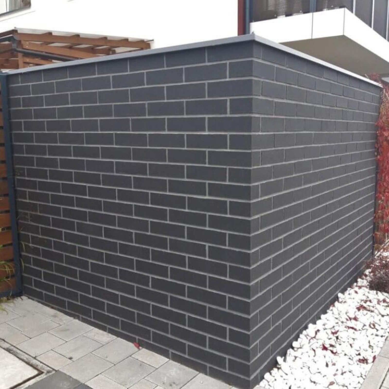 Zastosowanie materiału nawiązującego do historycznej cegły w połączeniu z intensywną, niemal smolistą barwą detali pozwala na przełamanie ruty projektowej i precyzyjne wyodrębnienie poszczególnych stref architektonicznych.