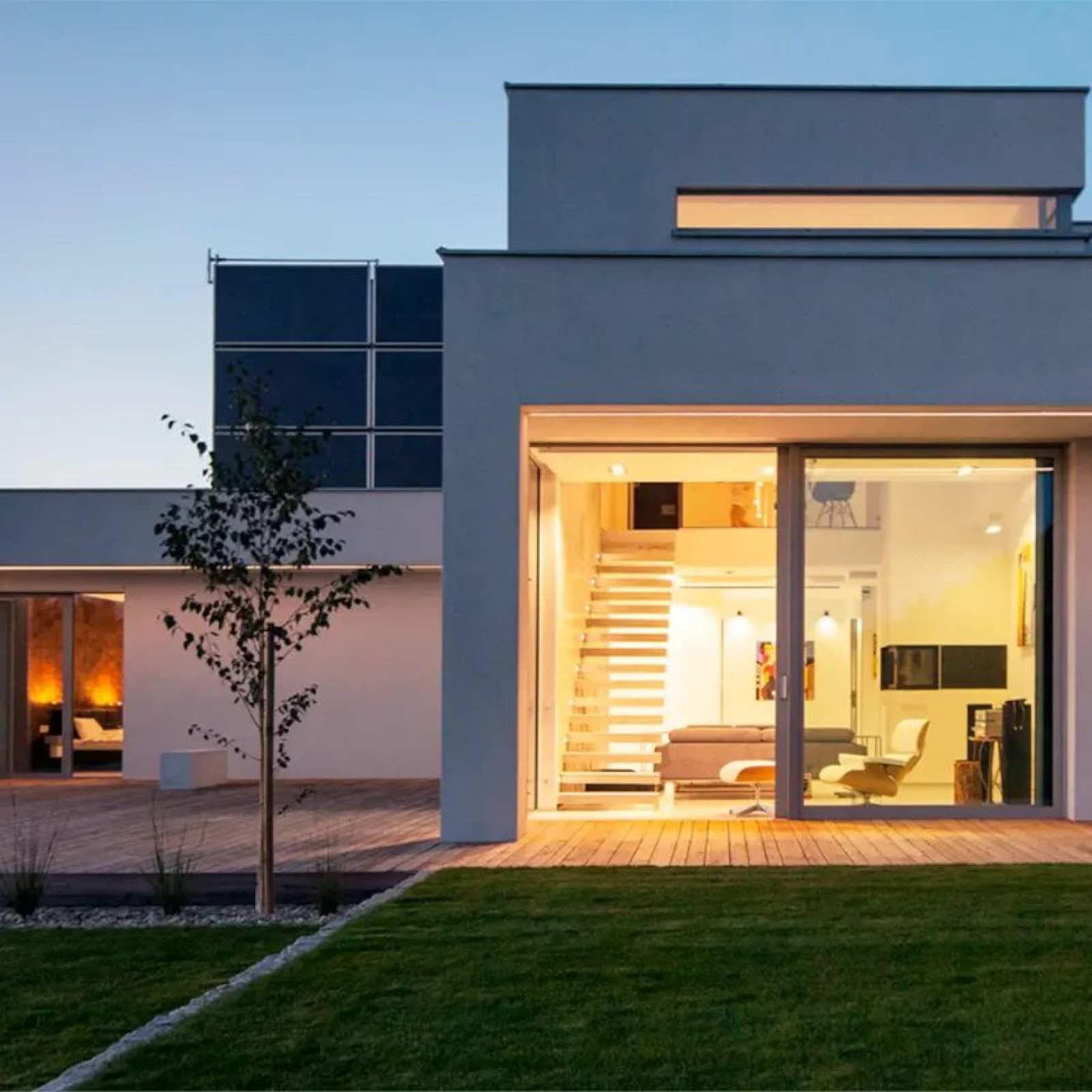 W projekcie zastosowane również zostało ogrzewanie podłogowe i wentylacja z rekuperacją zintegrowane z inteligentnymi urządzeniami sterującymi. Na elewacji Inwestor zdecydował się zainstalować pionowo czarny kolektor powietrzny celem ogrzania ciepłej wody użytkowej.