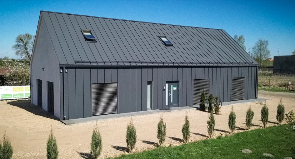 Nowoczesna budowa systemu opiera się na stalowej okładzinie na rąbek stojący, efektywnym rdzeniu izolacyjnym oraz niezwykle szczelnych zamkach systemowych. Ogromnym atutem Design One jest możliwość prowadzenia prac przez cały rok, ponieważ całkowity brak prac mokrych pozwala na montaż i budowę niezależnie od panujących warunków pogodowych czy temperatury. Dzięki temu harmonogram Twojej inwestycji przestaje być zakładnikiem aury, a Ty możesz planować postępy z niespotykaną dotąd precyzją.