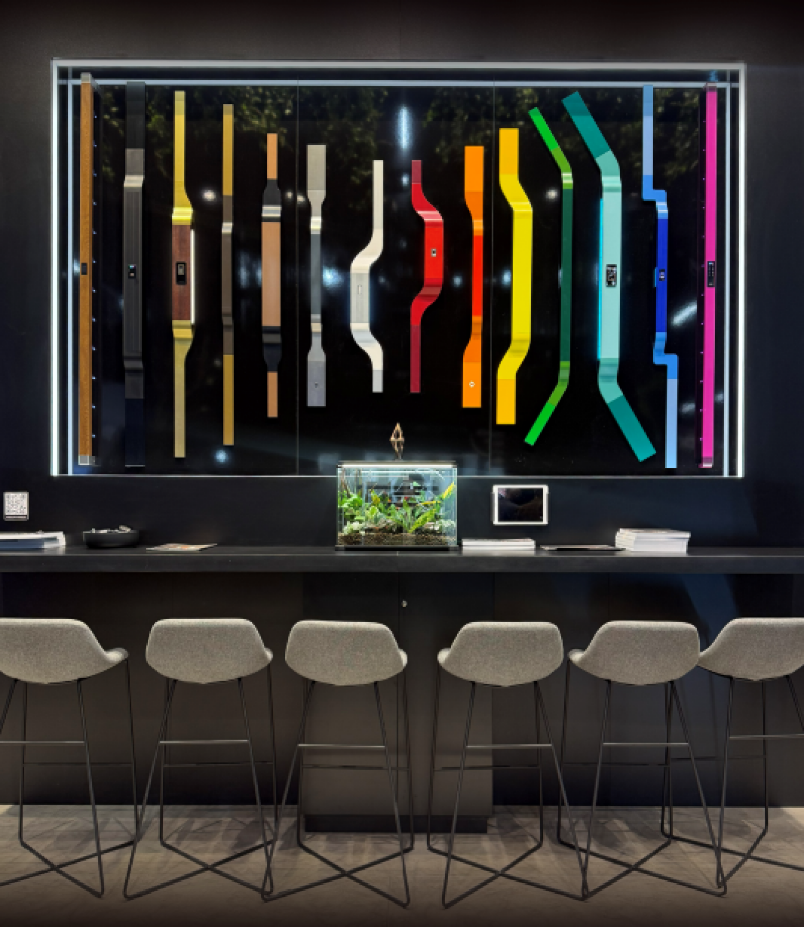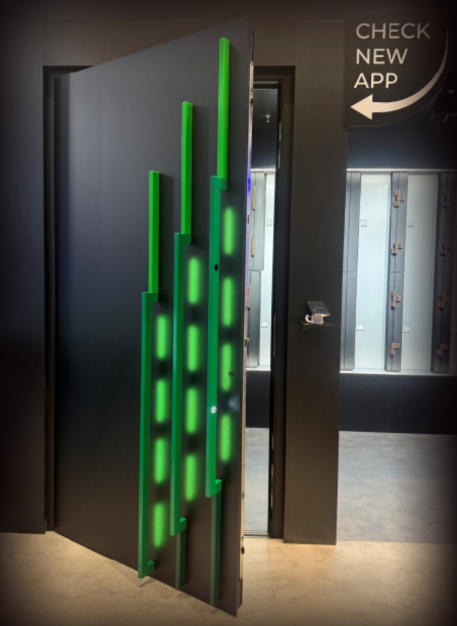 Przewymiarowane gabaryty i rzeźby na drzwiach, sprawiły, że te drzwi były naszymi głównymi bohaterami. Ich unikalny design i niezwykła funkcjonalność przyciągały wzrok, potwierdzając naszą pozycję w branży i zamiłowanie do innowacyjnych rozwiązań. Wszystko grało spójną całość i robiło piorunujące wrażenie.