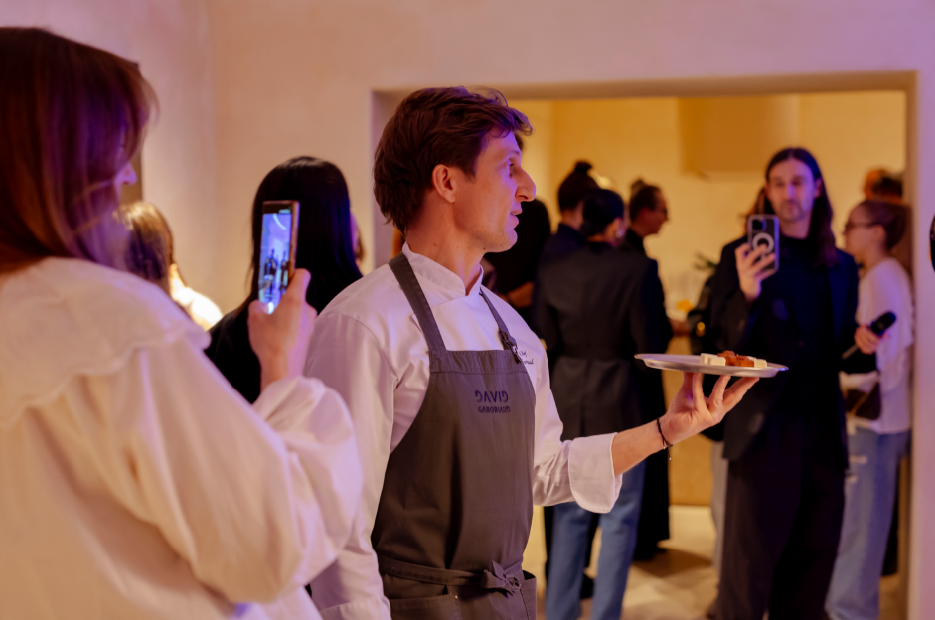 Wieczór dopełnił food performance przygotowany przez Davida Gaboriaud, znanego z autorskich programów telewizyjnych. Przekąski, artystycznie wyeksponowane i serwowane na stole specjalnie zaaranżowanym przez arch. Monikę Goszcz-Kłos, nawiązywały do idei kuchni jako przestrzeni zmysłowych doświadczeń, w której równie ważne są smak, zapach, estetyka i rytuał spotkania.
