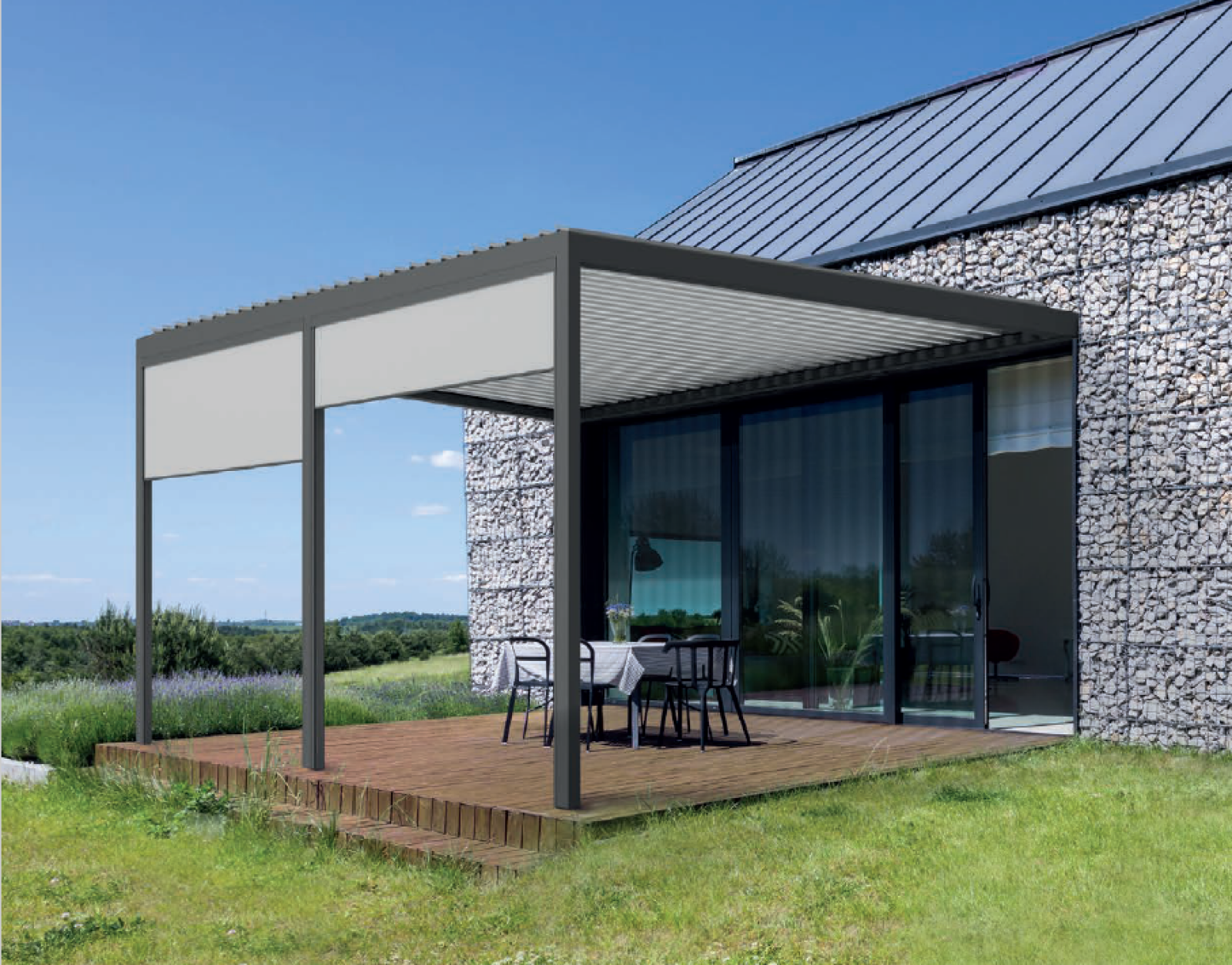Jednym z najczęściej wybieranych rozszerzeń są osłony przeciwsłoneczne typu zip screen. Wysokiej jakości tkaniny, dostępne zarówno w wersjach przeziernych, jak i nieprzeziernych, oraz szeroka gama kolorystyczna pozwalają precyzyjnie dopasować roletę do bryły budynku i charakteru całej aranżacji. To rozwiązanie zwiększa prywatność, poprawia ochronę przed słońcem i pomaga jeszcze lepiej kontrolować warunki panujące pod pergolą.