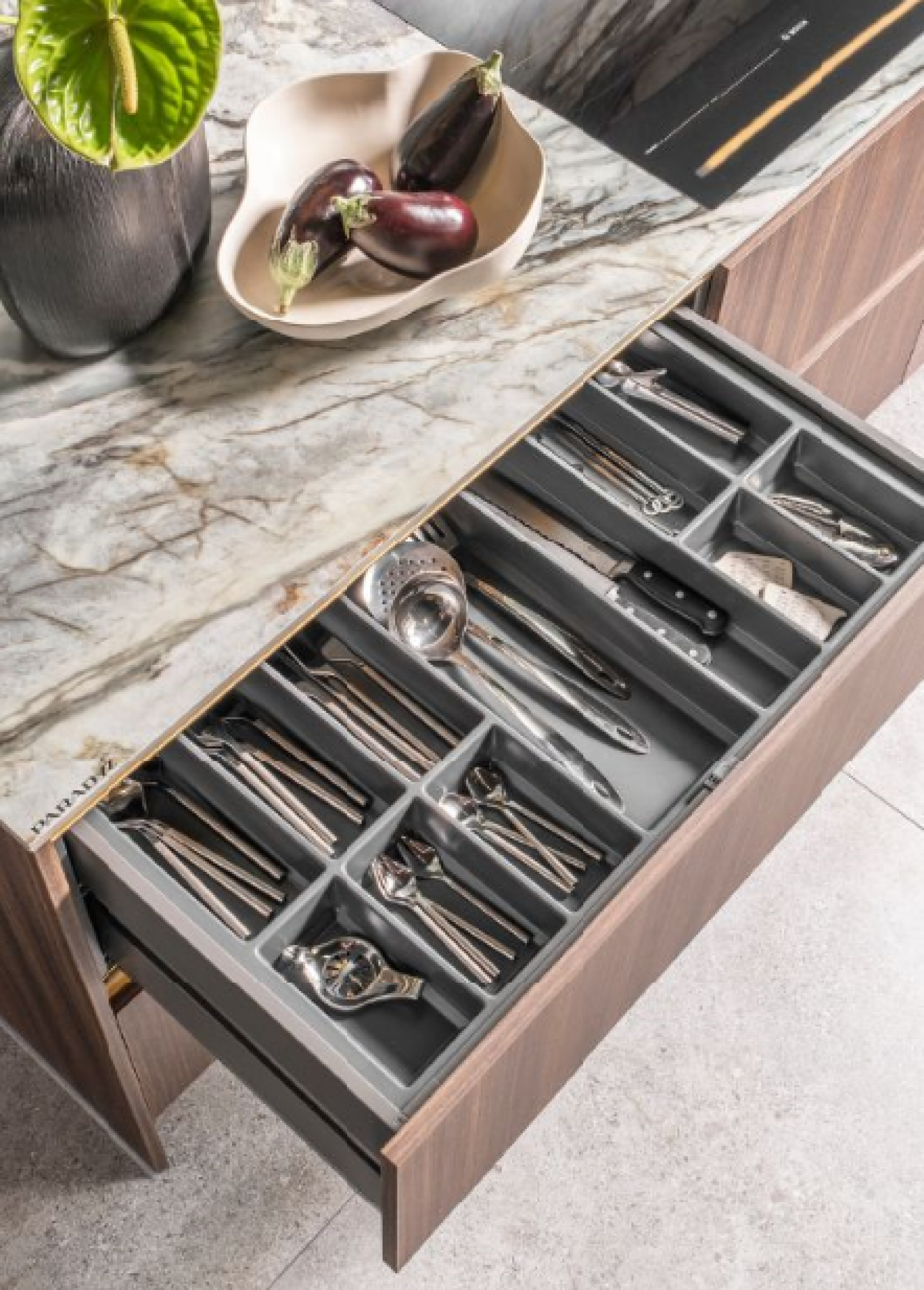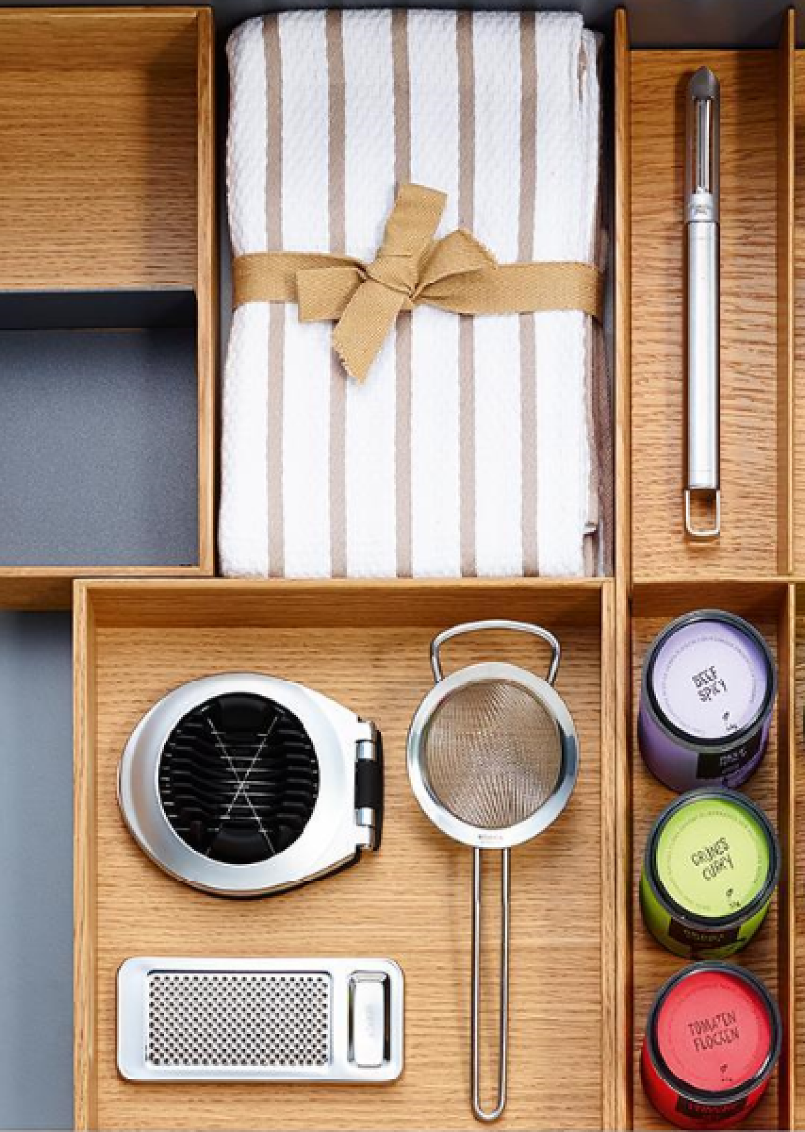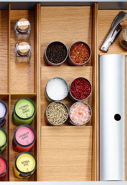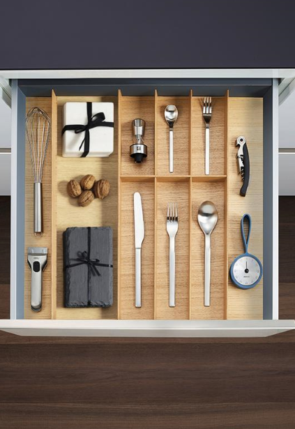 Drewniane wkłady do szuflad Fine Line LiniQ to jedno z najbardziej eleganckich i funkcjonalnych rozwiązań do organizacji kuchennych szuflad. Sprawdzą się szczególnie tam, gdzie liczy się nie tylko porządek, ale również wysoka estetyka wnętrza mebli kuchennych.