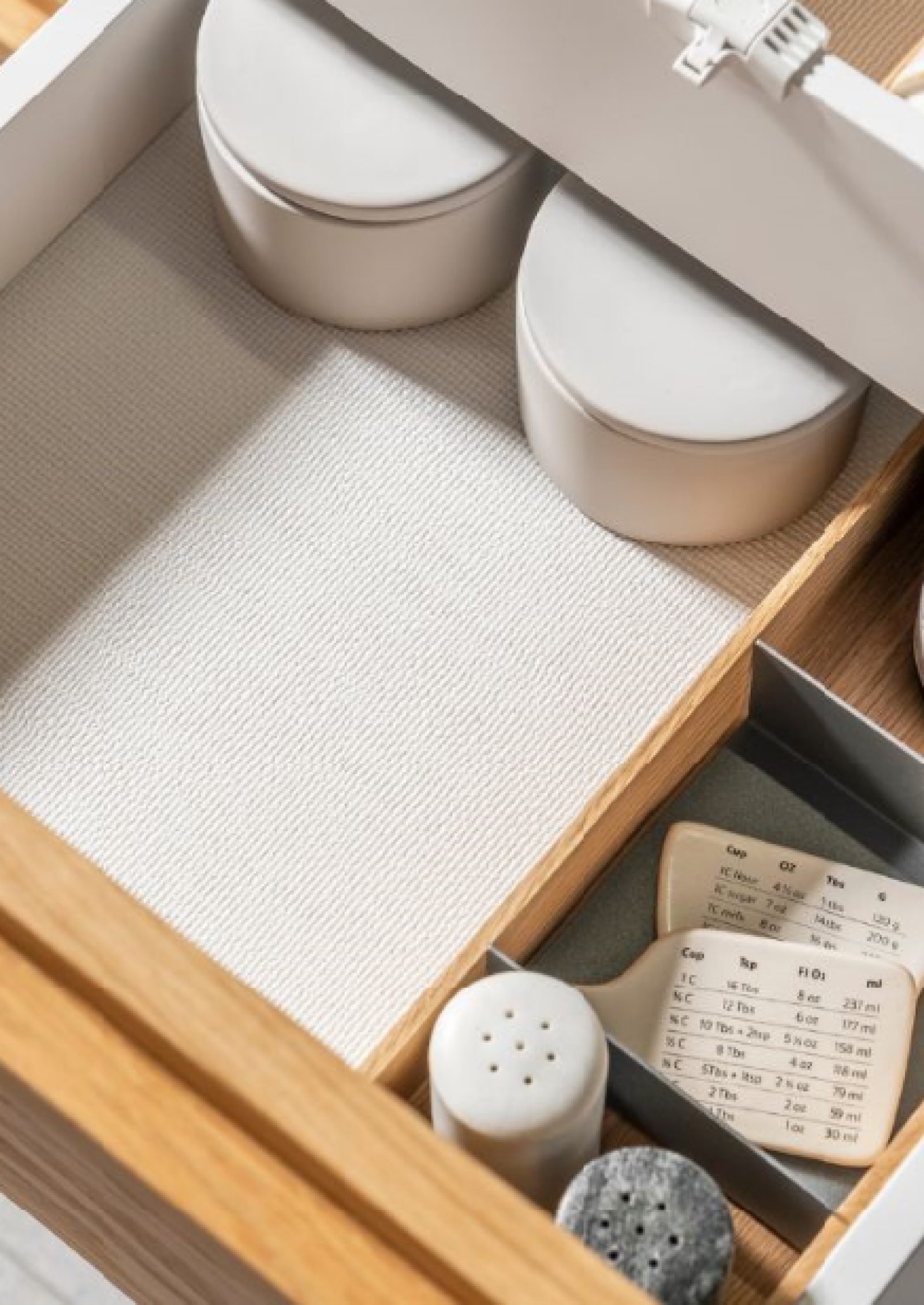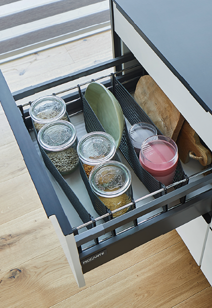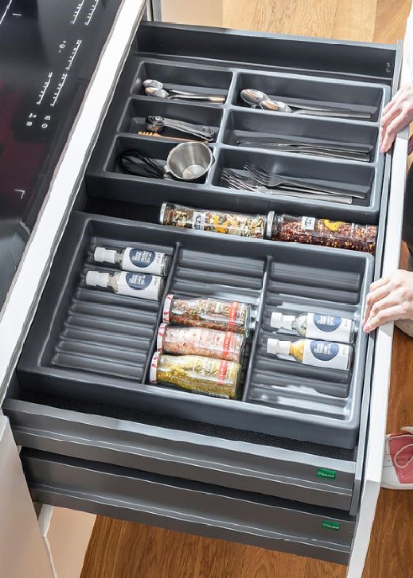 Takie rozwiązanie daje bardzo duże możliwości organizacji i pozwala maksymalnie dopasować układ szuflady do własnych potrzeb. Separado sprawdzi się szczególnie w kuchniach, w których jedna standardowa przegródka nie wystarcza, a użytkownik chce stworzyć bardziej przemyślany i dopasowany system przechowywania.