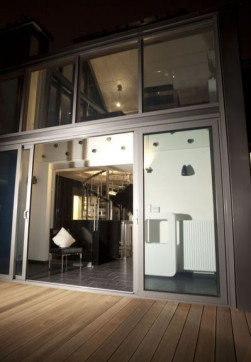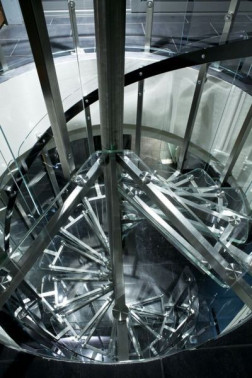 Cechą charakterystyczną jest duża wytrzymałość, łatwość kształtowania i obróbki oraz zimny i metaliczny efekt końcowy wykończonych powierzchni. Szkło klejone warstwowe jest też "sztuką" tworzenia wytrzymałych elementów o "niewidocznej" masie. Na balustradach znalazły się "tarcze" ze szkła giętego. Połączenie tych materiałów daje nową wartość we wnętrzu: lekkość, przezierność oraz kosmiczny efekt domu przyszłości. Może to już realizacja szklanych domów?