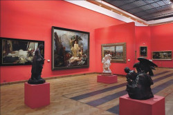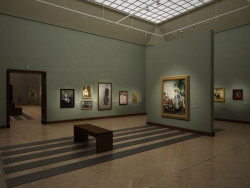 Kolor ścian jako tło a nie dominanta! owa kolorystyka ścian galerii stałych Muzeum Narodowego w Warszawie zastąpiła wcześniejsze, w dużym stopniu ostre barwy: jaskrawe czerwienie, intensywne zielenie, seledyny i róże. Obecne kolory: subtelne szarości, dostojne błękity i pastelowe fiolety inspirowane są naturą (kolory ziemi). jak mówi Robert Rumas, autor projektu rearanżacji wnętrz Muzeum Narodowego w Warszawie: Podstawowym założeniem realizowanej koncepcji kolorystycznej, było jednak to, że kolorystyka sal powinna tworzyć tło dla dzieł, a nie być jej podstawową wartością estetyczną i optyczną.