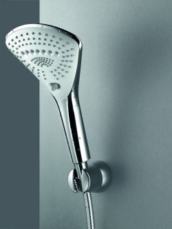 KLUDI FIZZ świetnie komponuje się z nową kolekcją armatury KLUDI BALANCE. Jurorzy PLUS X award docenili jednak nie tylko wzornictwo, ale także funkcjonalność KLUDI FIZZ 3S. Rączka wyposażona jest w 114 dysz rozmieszczonych na tarczy z lekkiego tworzywa. Z łatwością możemy poczuć odprężające działanie wody pod odpowiednim ciśnieniem – za pomocą specjalnego przełącznika można regulować strumień wody. Może on być miękki, relaksujący lub deszczowy.