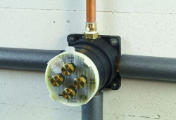 KLUDI FLEXX.BOXX wyróżnia połączenie głowicy ceramicznej lub termostatycznej w zestaw z częścią natynkową. Dzięki takiemu rozwiązaniu moduł podtynkowy KLUDI FLEXX.BOXX pasuje do szerokiej gamy elementów natynkowych. Istotna innowacja to element do przepłukiwania instalacji – pozwala on na komfortowe wykonanie tej operacji poprzez podłączenie krótkiego, elastycznego przewodu. Moduł do przepłukiwania pozwala też na tymczasowe korzystanie z instalacji wodnej bez konieczności mocowania elementu sterującego.