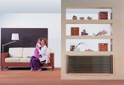 Do linii harmonijnej należy także grzejnik Quatro o niezwykle ciekawej, plastycznej linii i opływowej formie, który świetnie będzie wyglądał w pomieszczeniach wyposażonych w galanterię łazienkową o kształtach obłych i zaokrąglonych. Standardowo dostępny jest w kolorach biały półmat RAL i silver. Doskonałym rozwiązaniem do pomieszczeń urządzonych w stylu tradycyjnym będzie pokojowy grzejnik Royal, w kolorze brązowym, należący do linii klasycznej o poziomym układzie, posiadający ażurową ozdobną czarną kratkę.