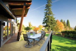 Dobrym sąsiadem drewna są duże kostki w naturalnych odcieniach. Spokojny stonowany układ, składający się z prostokątów w dużych rozmiarach doskonale prezentuje się na rozległych powierzchniach. – Warto wziąć pod uwagę wrażliwość drewna na warunki atmosferyczne i zabudowywać je np. w zadaszonej części tarasu. Dzięki czemu materiał ten będzie chroniony przed niszczącym działaniem opadów atmosferycznych i odbarwiającymi drewno promieniami słonecznymi. Sąsiedztwo trwałej kostki znakomicie sprawdzi się na odkrytej części tarasu – mówi architekt Dawid Kuptz – koordynator ds rozwoju rynku w firmie Libet.