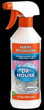 Pierwszym z nich jest dr House Kabina prysznicowa, doskonale radzący sobie z osadami z mydła, olejków kąpielowych, plamami po wodzie, lekkim nalotem kamiennym - jednym słowem z typowymi zjawiskami z jakimi możemy spotkać się podczas czyszczenia natrysków. Jednocześnie nie zawiera on substancji żrących, które mogłyby powodować matowienie powierzchni wykonanych ze szkła bądź tworzyw sztucznych, z których najczęściej wykonane są kabiny prysznicowe.