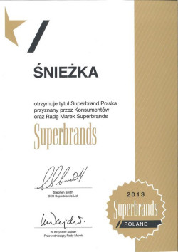 Śniezka z tytułem Superbrands – wyróżnienia Superbrands przyznawane są od ponad 17 lat przez międzynarodową organizację The Superbrands Ltd, działającą w 87 krajach na całym świecie. Celem projektu jest promowanie idei brandingu poprzez nagradzanie i opisywanie drogi do sukcesu najsilniejszych marek.