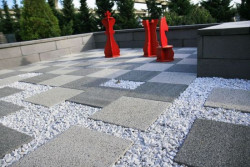 Kostki brukowe i płyty tarasowe z dodatkiem naturalnego kruszywa nadają elegancji najprostszej nawet aranżacji. Z kolei twórcze wykorzystanie ukształtowania terenu, podkreśla charakter miejsca podnosząc jego wartość użytkową i estetyczną. Jednak w tym przypadku projektantka poszła o krok dalej. Zachęcając mieszkańców miasta (zarówno tych młodszych, jak i starszych) do interakcji i zaangażowania.