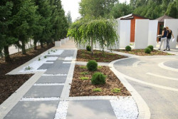 Fragment ogrodu wystawowego, który otwiera wystawę Libet Design podsuwa kilka pomysłów aranżacji otoczenia w przestrzeni miejskiej. Monochromatyczna kompozycja stworzona z elementów nawierzchniowych i tarasowych nawiązuje do współczesnych trendów i wprowadza w specyficzny klimat charakterystyczny dla mocno zurbanizowanego krajobrazu. O wartości takiego projektu w dużym stopniu decyduje jakość wykorzystanych materiałów.