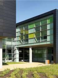 Kontrastowa elewacja, proste formy i ciekawa kolorystyka to znaki rozpoznawcze nowego budynku Instytutu Technologii Żywności i Gastronomii w Łomży. Ciemną, aluminiową elewację od strony ulicy „przełamują” kolorowe przeszklone ściany, doskonale komponujące się z otaczającą zielenią. Zastosowanie szkła marki Pilkington zapewniło wysokie standardy w zakresie ochrony przed słońcem, izolacyjności cieplnej i bezpieczeństwa. Pod koniec ubiegłego roku zakończyła się budowa nowego budynku dydaktycznego Instytutu Technologii Żywności i Gastronomii Państwowej Wyższej Szkoły Informatyki i Przedsiębiorczości w Łomży.