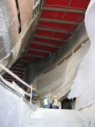 Centralny element budynku – falująca ściana - to pierwsza na świecie krzywoliniowa ściana konstrukcyjna, która "trzyma" wszystkie stropy i całą konstrukcję stalową dachu. Utworzenie tak niezwykłego kształtu ściany stanowiło nie lada wyzwaniem zarówno pod względem architektonicznym, jak i wykonawczym. Specjalnie na potrzeby tej inwestycji firma Soudal dostarczyła systemowy ognioochronny silikon neutralny w niepowtarzalnym, wymaganym przez projekt, kolorze. FIRE SILICONE B1 FR przeznaczony jest do ogniochronnego wypełniania złączy liniowych i szczelin w pionowych i poziomych przegrodach betonowych, żelbetowych i murowanych z cegły ceramicznej, silikatowej lub elementów z betonu komórkowego w warunkach określonych przez aprobatę techniczną ITB . Prawidłowo wykonane uszczelnienia klasyfikowane mają odporność ogniową do EI 120 – powstrzymują więc rozprzestrzenianie się dymu i płomieni przez dwie godziny.