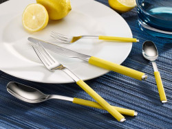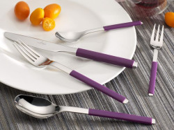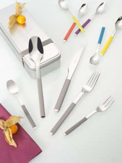 S+ to wiele możliwości do ożywienia klasycznego stołu! W każdej z sześciu kolorystycznych linii znajdują się; widelec, nóż, łyżka, łyżeczka i widelczyk do ciast. Dostępne są osobno i w monochromatycznych zestawach (24 i 30 szt.), w szykownym metalowym pudełku.