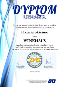 OPINIE PRODUCENTÓW OKIEN O DOSTAWCACH - RAPORT 2013 – jak co roku Centrum Analiz Branżowych (www.cab-badania.pl) opracowuje ankietę na podstawie badań przeprowadzonych wśród producentów okien. Dyplomy i wyróżnienia dla Winkhaus oto wyniki: