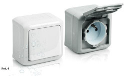 Drugą część oferty Forix stanowi osprzęt o stopniu ochrony IP44 o wzmocnionej odporności na uderzenie. Osprzęt natynkowy Forix IP44 możemy instalować przede wszystkim w pomieszczeniach wilgotnych, garażach, zadaszonych tarasach, budynkach gospodarczych, piwnicach, ogródkach restauracyjnych lub magazynach (fot.4).