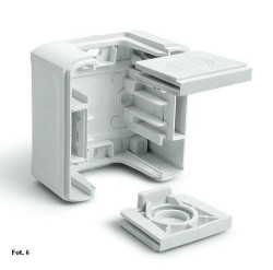 Dla sektora usługowego oraz małych i średnich pomieszczeń komercyjnych przewidziane zostały stacje robocze w wersji cztero- lub sześciokrotnej w kolorze białym (fot.3). Dzięki temu rozwiązaniu istnieje możliwość koncentracji instalacji zasilającej i sieci teleinformatycznej w jednym punkcie dostępowym. Dodatkowo zakres zastosowania stacji można rozszerzyć przez użycie specjalnego adaptera do funkcji Mosaic.