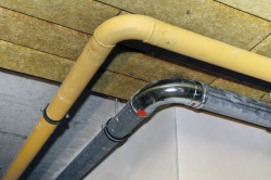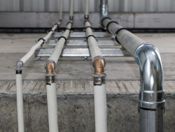 Instalacja hydrantowa – rury Prestabo ocynkowane dwustronnie. Dzięki pierścieniom zaprasowywanym możliwe było wykonanie połączeń tuż przy ścianie.