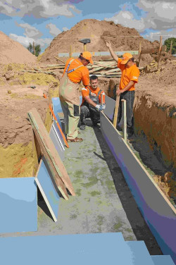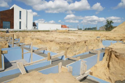 Ale to nie jedyna zaleta błękitnej powierzchni. Można po niej również bardzo precyzyjnie kreślić, co bardzo ułatwia przygotowania do wykonania bardziej skomplikowanych geometrycznie elementów. A poza tym – płyty szalunkowe mfp® są pięknie niebieskie. A zawsze miło jest wprowadzić barwny akcent na budowę.