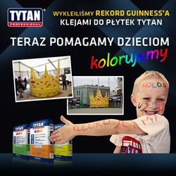 Do przewidzianych remontów Domów Dziecka TYTAN® zapewni dostawę farb, gruntów oraz klejów do płytek, dzięki którym pobito rekord Guinness’a. Wsparcie zapewnią również Mistrzowie Polski Glazurnictwa, którzy wykleili klejami TYTAN® największą na świecie rzeźbę (koronę) z glazury! Miało to miejsce w Kielcach, więc korona została podarowana Koronie Kielce.