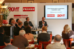 20-lecie działalności firmy Franke w Polsce stało się inspiracją do zorganizowania konferencji prasowej i debaty pod hasłem szwajcarskich standardów prowadzenia działalności. Goście którzy wzięli udział w spotkaniu: Lukas Beglinger – Ambasador Szwajcarii w Polsce, Marek Kondrat – Prezes Polsko-Szwajcarskiej Izby Gospodarczej, Michael Pieper – właściciel i CEO Franke Artemis Group oraz Marek Szymański – prezes Franke Polska, dyskutowali o tym, czym właściwie są szwajcarskie standardy i jaki mają wpływ na codzienne relacje handlowe i gospodarcze.