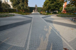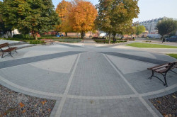 Wyjątkowa aranżacja skweru gen. Hellera możliwa była dzięki zastosowaniu ciekawego rysunku nawierzchni zrealizowanego z wykorzystaniem dekoracyjnej kostki brukowej. W tym wypadku wybrano drobny kształt kostki Piccoli Elegante, która idealnie sprawdza się w przypadku realizacji projektów opartych na kołach, okręgach czy łukach. Zaletą kostki Piccoli jest także duży wybór kolorów, co pozwala na komponowanie oryginalnych wzorów. Tutaj grafitowe, białe i jasnopopielate odcienie pozostają w harmonii z charakterem skweru, dyskretnie eksponując kompozycję zieleni.