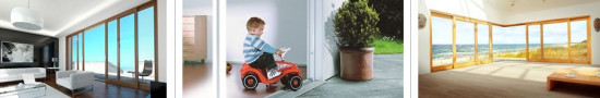 - użytkownik ma do wyboru wiele zestawień drzwi tarasowych – np. skrzydło przesuwne połączone z oknem stałym (określany często jako Fix), bądź przeszklone naroże składające się z drzwi połączonych pod kątem prostym (bez słupka w narożu);