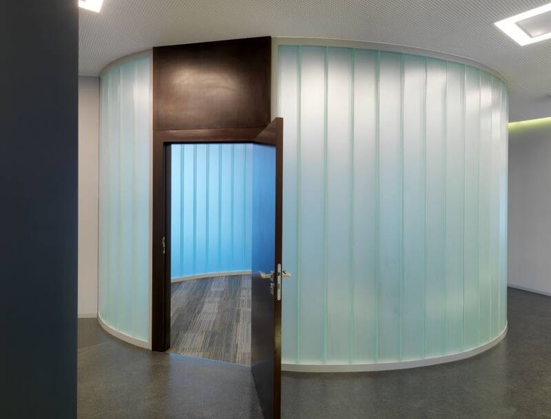 Szkło profilowe pozwala dowolnie aranżować przestrzeń i zapewnia użytkownikom poczucie prywatności. Jednym z projektów, który obrazuje możliwości szkła Pilkington Profilit™, jest budynek apartamentowo-biurowy "Grzybowska 4" w Warszawie, gdzie za pomocą szklanej ścianki z większej przestrzeni biurowej wydzielono kameralną salę konferencyjną. Projektanci zdecydowali o zastosowaniu matowego, półprzezroczystego szkła Pilkington Profilit™ Opal, którego wewnętrzna powierzchnia została poddana piaskowaniu. W efekcie uzyskano równomierne rozproszenie światła i zapewniono użytkownikom wysoki poziom prywatności. Ściankę w biurowcu „Grzybowska 4” zrealizowano w układzie szklenia pionowego podwójnego, co zagwarantowało dobre parametry akustyczne. Szklenie zostało wykonane po łuku, dzięki czemu osiągnięto ciekawy efekt wizualny i optymalne zagospodarowanie przestrzeni.