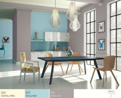 Przyszarzane odcienie pasteli święcą triumfy i pozwalają na tworzenie nastrojowych, zapewniających domowy komfort przestrzeni. W trendzie Powrót pasteli towarzyszą im delikatne szarości o lekko chromatycznym zabarwieniu oraz ozdobne detale i tkaniny z delikatnymi, kwiatowymi motywami. Dominująca tu subtelna kolorystyka nawiązuje do modnej stylistyki vintage, stanowiącej bogate źródło inspiracji. Barwne zestawienia kolorów tworzą doskonałe tło dla drewnianych i tapicerowanych mebli oraz miedzianych i mosiężnych detali. Dzięki wpleceniu w aranżacje kilku współczesnych elementów, uzyskamy wyrafinowane, przyjazne aranżacje. Takie wnętrza inspirują nie tylko wielbicieli dekady lat pięćdziesiątych XX wieku, ale także wszystkich tych, którzy poszukują pomysłu na wysmakowaną kompozycję swoich pomieszczeń.