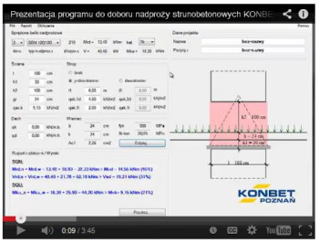 KONBET KALKULATOR SBN stanowi niezależną aplikację pozwalającą na sprawdzenie możliwości zastosowania nadproży strunobetonowych i pomoc w doborze typu nadproża odpowiedniego do zadanych obciążeń uwzględniając współpracę wieńca stropowego.