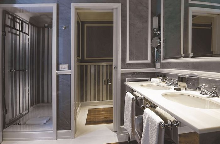 Wszystkie elementy wystroju zabytkowej, pochodzącej z XVII wieku rezydencji skomponowano z wyjątkową starannością i dbałością o każdy detal. Do łazienek właściciele hotelu J.K. Place Roma zdecydowali się wybrać sprawdzoną jakość „made in Germany“ W pokojach kąpielowych zamontowano wanny oraz powierzchnie prysznicowe ze stali emaliowanej Kaldewei.
