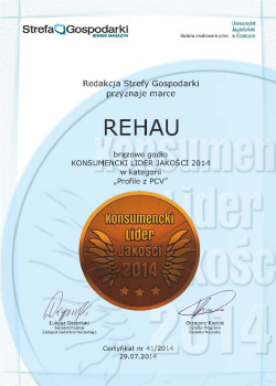Kolejne wyróżnienie dla REHAU – Brązowe Godło KONSUMENCKI LIDER JAKOŚCI 2014