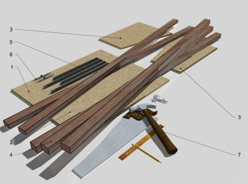 Potrzebna będzie płyta MFP, listwy drewniane, stalowe kątowniki i zawiasy oraz szkło, pleksi lub folia do pokrycia wieka.