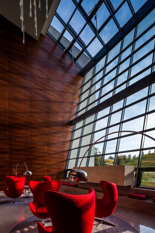 Oba ośrodki zasługują na uwagę nie tylko ze względu na najwyższy standard obsługi gości prywatnych i biznesowych, ale również z powodu supernowoczesnych rozwiązań architektonicznych autorstwa biura KM Rubaszkiewicz. Chociaż każdy z hoteli zaprojektowany został w zupełnie innym stylu to łączy je niezwykle elegancki wygląd, oryginalna fasada oraz szerokie zastosowanie szkła w obrębie bryły budynku. Co więcej, w obu przypadkach wykorzystano wysokoselektywne szkło SunGuard SN 51/28 firmy Guardian, które jednocześnie zapewnia krystalicznie przejrzysty widok i najwyższą ochronę przeciwsłoneczną.