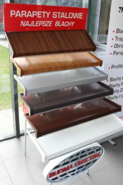 Każdy parapet docinany jest na wybraną przez Państwa długość. Parapet stalowy powlekany zewnętrzny grubość 0,7 mm, dostępna powłoka drewnopodobna przy grubości 0,5 mm.