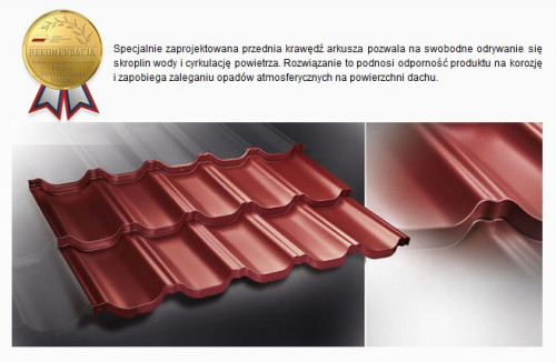 - przetłoczenia pionowe na blachodachówce wzmocnione są przez dodatkowe wywinięci blachy do tyłu modułu – zapewnia to zwiększoną sztywność blachodachówki i całego pokrycia dachowego,