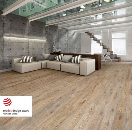 Nagrodzona podłoga dębowa DESIRE z kolekcji trójwarstwowych podłóg drewnianych The Miracles Collection została wyróżniona przez Jury w kategorii Product Design za najwyższej jakości wzornictwo przemysłowe. Wygrała połączeniem niezwykle funkcjonalnej trójwarstwowej konstrukcji, doskonale precyzyjnych wymiarów i nowoczesnego bezklejowego systemu montażu z oryginalnym i dopracowanym uszlachetnieniem drewnianej powierzchni (zastosowana brązowa bejca, przecierany biały olej ECO, szczotkowanie) zamkniętym subtelną mikrofazą.