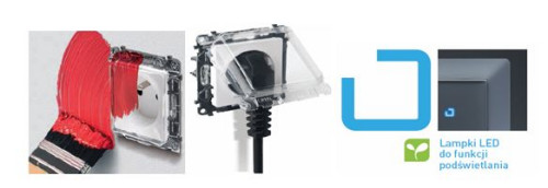 Warto również pamiętać o możliwości wyboru łączników oświetlenia w wersji z diodowym podświetleniem klawiszy łączników. Technologia LED gwarantuje długotrwałe działanie, minimalne zużycie prądu oraz modną delikatną niebieską barwę podświetlenia, budującą zadowolenie użytkownika.