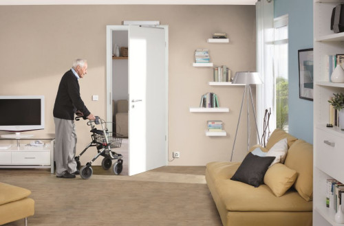 Nagrodzony Złotym Medalem MTP napęd PortaMatic do 1-skrzydłowych drzwi wewnętrznych zwiększa komfort życia osób niepełnosprawnych, umożliwiając samodzielne poruszanie się między pokojami.