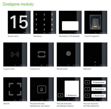 Zlicowany montaż modułów DCS w profilu drzwiowym oraz elegancka powierzchnia z czarnego szkła nadają całemu systemowi szlachetny, luksusowy charakter. Jednorodne, ponadczasowe wzornictwo poszczególnych modułów i możliwość ich lokalizacji w różnych miejscach umożliwiają maksimum swobody projektowania. Kolejny krok w kierunku indywidualizacji systemu umożliwiają elementy dekoracyjne, dostępne na zapytanie we wszystkich kolorach palety RAL.
