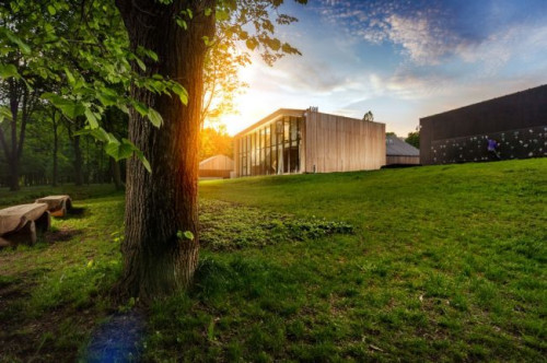 Autorzy projektu – architekci z dwóch warszawskich pracowni 307kilo i WWAA – idealnie połączyli tradycyjne elementy układu urbanistycznego z naturalnymi, prostymi wykończeniami. Efekt bliskiego kontaktu z otaczającą przyrodą podkreślają elewacje z desek z modrzewia syberyjskiego, a także duża ilość przeszkleń, otwierających kompleks na pobliski park i dziedziniec. Wykorzystanie szkła marki Pilkington, oprócz pięknych widoków zapewnia pomieszczeniom dostęp światła dziennego i pomaga utrzymać komfortową temperaturę.