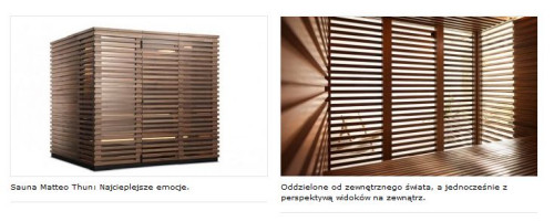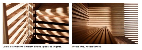 Projekt oświetlenia w tym rozwiązaniu zasługuje na szczególną uwagę. Zewnętrzne światło dzięki drewnianym lamelom zamontowanym na szybach sauny pośrednio wpada do wnętrza, powodując, że osoby korzystające z sauny są niewidoczne. Która sauna chroni bardziej Twoją prywatność?