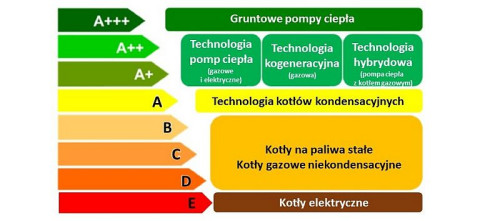 - "Indukcyjna pompa ciepła" nie ma żadnych elementów mechanicznych i jest to po prostu kocioł elektryczny, w którym bezpośrednio za pomocą energii elektrycznej podgrzewana jest woda. A zatem takie urządzenie grzewcze może mieć klasę energetyczną E, a nie klasę A++, która charakteryzuje urządzenia grzewcze wykorzystujące ciepło z odnawialnych źródeł (powietrzne i gruntowe pompy ciepła) lub urządzenia wysokosprawnej kogeneracji, w których wytwarzane jest ciepło i energia elektryczna – p. rysunek poniżej."